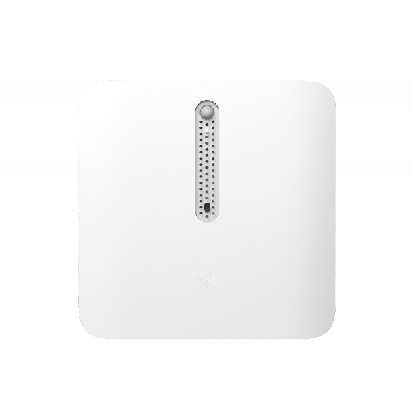 PoE environmental sensor monitoring temperature, humidity, air quality, noise, and motion.